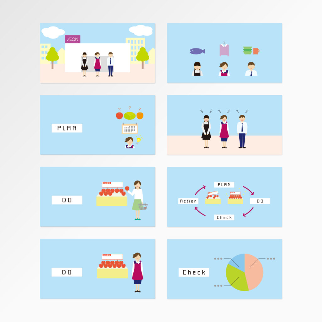 イオン様の社内教育用動画に用いるイラストを制作しました。
