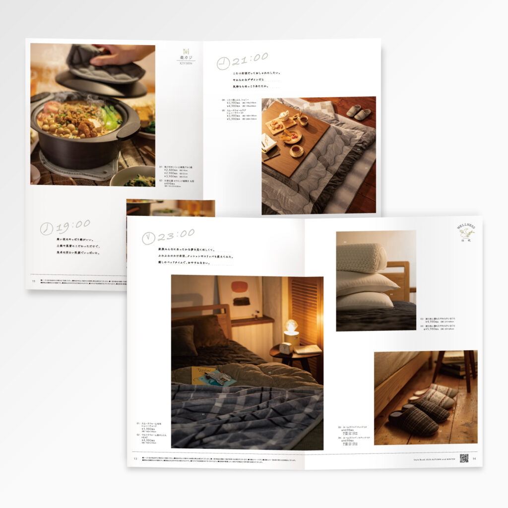 朝から夜までの1日の暮らしに沿って商品を紹介し、読者が自然とブランドの世界観や価値観を感じられる構成としています。