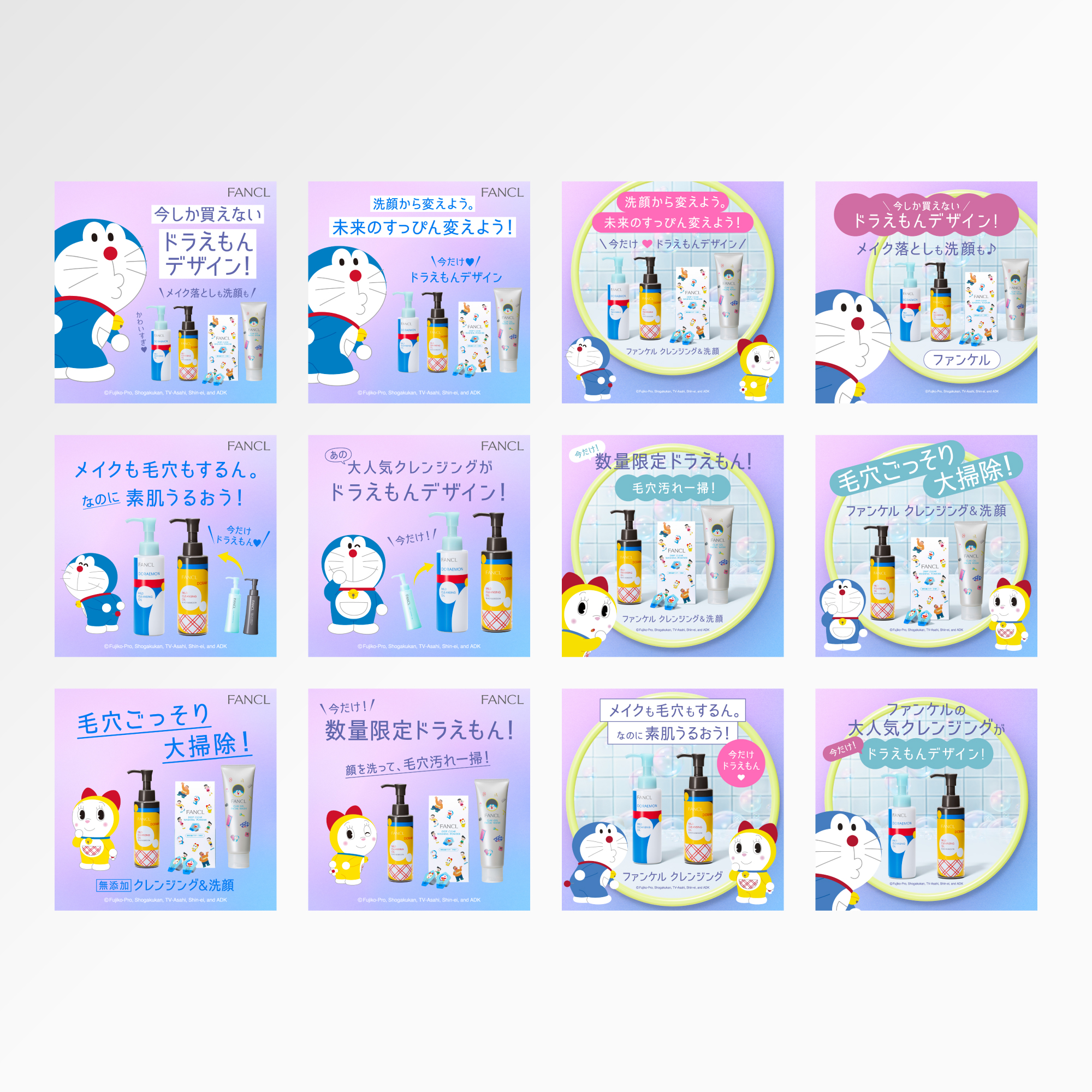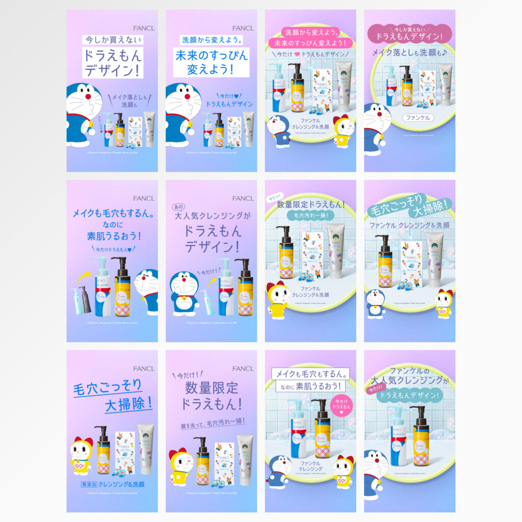ファンケル様のドラえもんコラボ商品におけるSNS広告を制作しました。