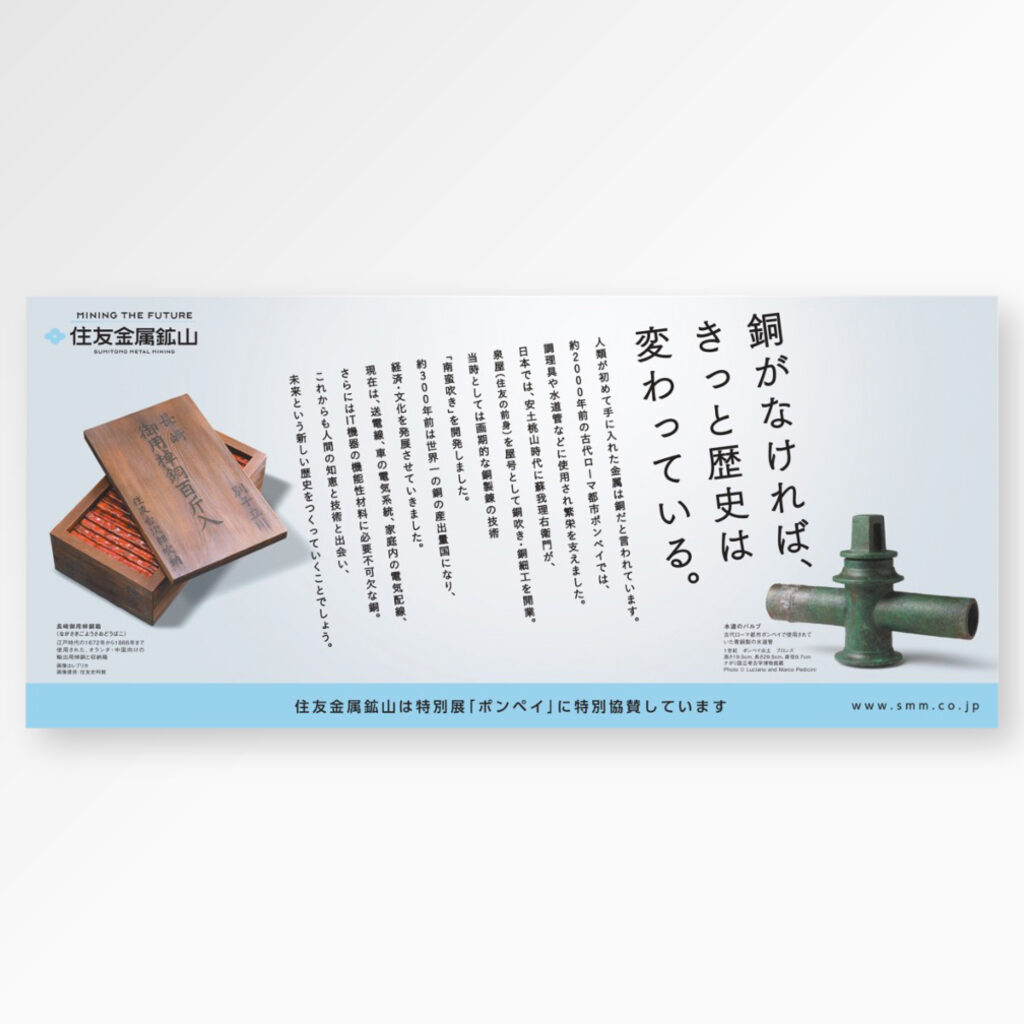また、本広告は住友金属鉱山様がポンペイ展の特別協賛として、その記念に出稿されたものです。