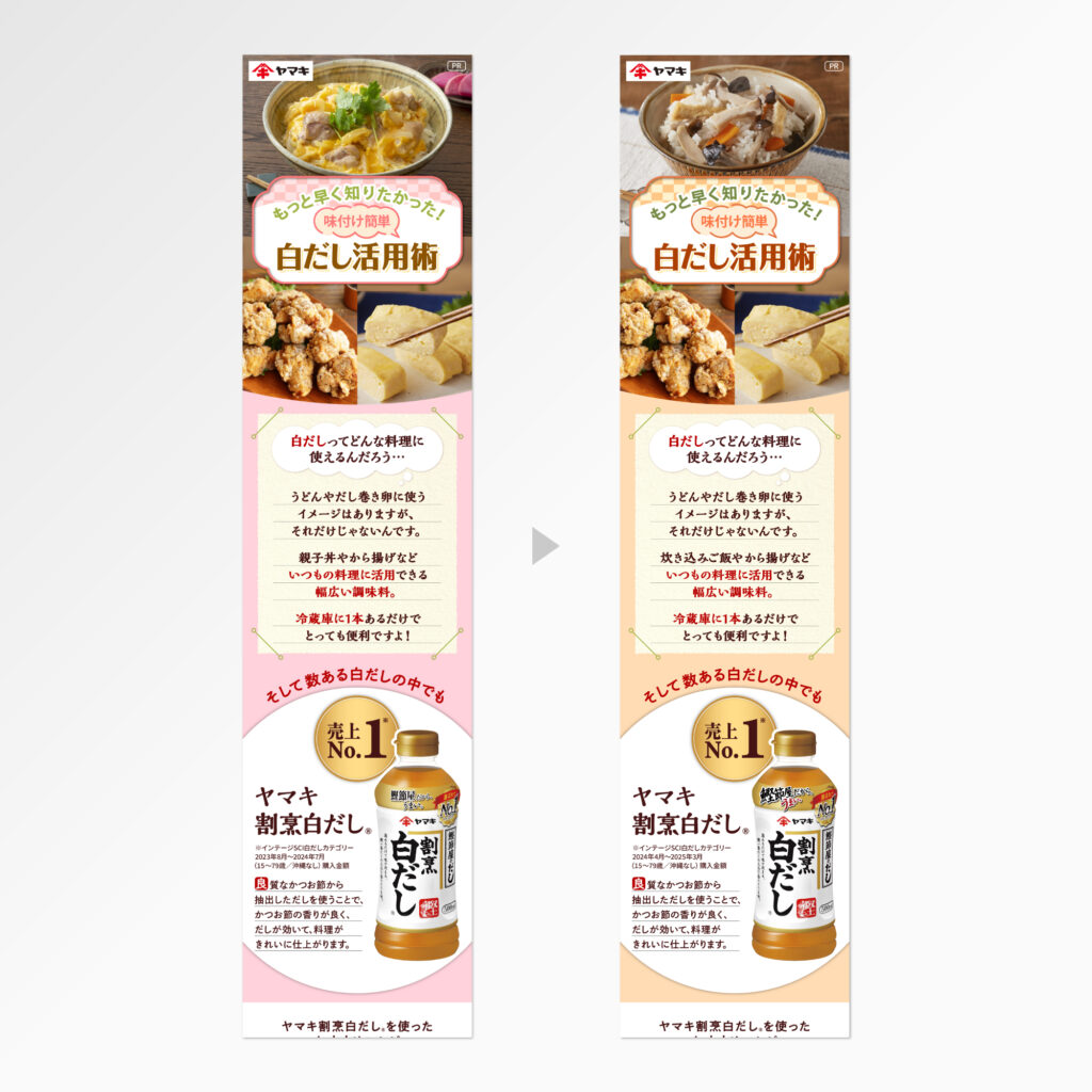 ヤマキ様の「ヤマキ割烹白だし®︎」のLPおよびバナーを制作しました。