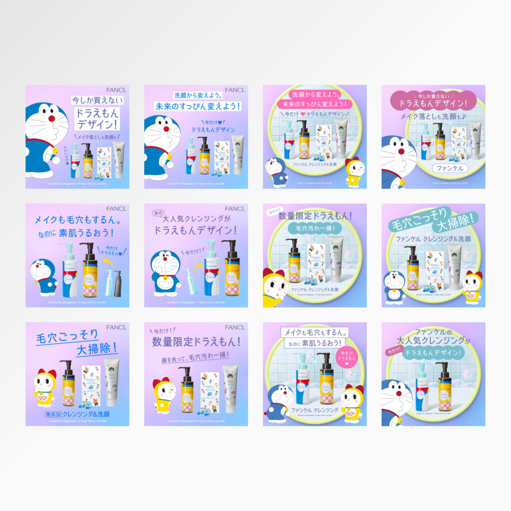 ファンケルドラえもんコラボ マイクレ & 洗顔【 SNS広告 】 【 X・Instagram 】 【 Instagram 】 ファンケル様のドラえもんコラボ商品におけるSNS広告を制作しました。※キービジュアルの制作はkazeproさんです。SNSマーケティングではABテスト(複数... -