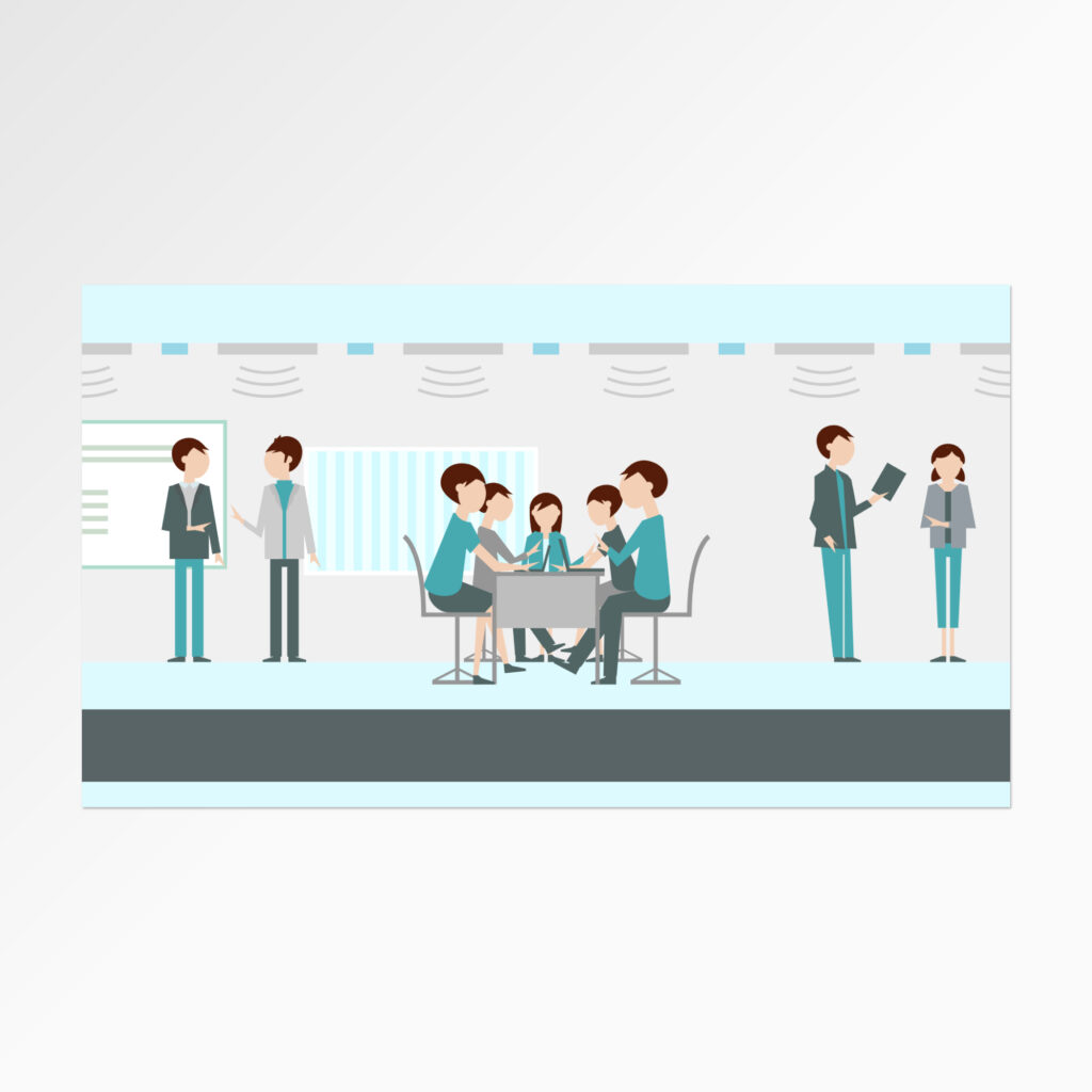 日本ガイシ【 映像用イラスト 】 日本ガイシ様の映像用イラストを制作しました。全体のトーンは、クリーンで信頼感のある色調に統一し、映像全体で一貫した世界観を表現しました。また、専門的な内容がわかりやすく伝わるよう、人物や建物などの要素はシン... -