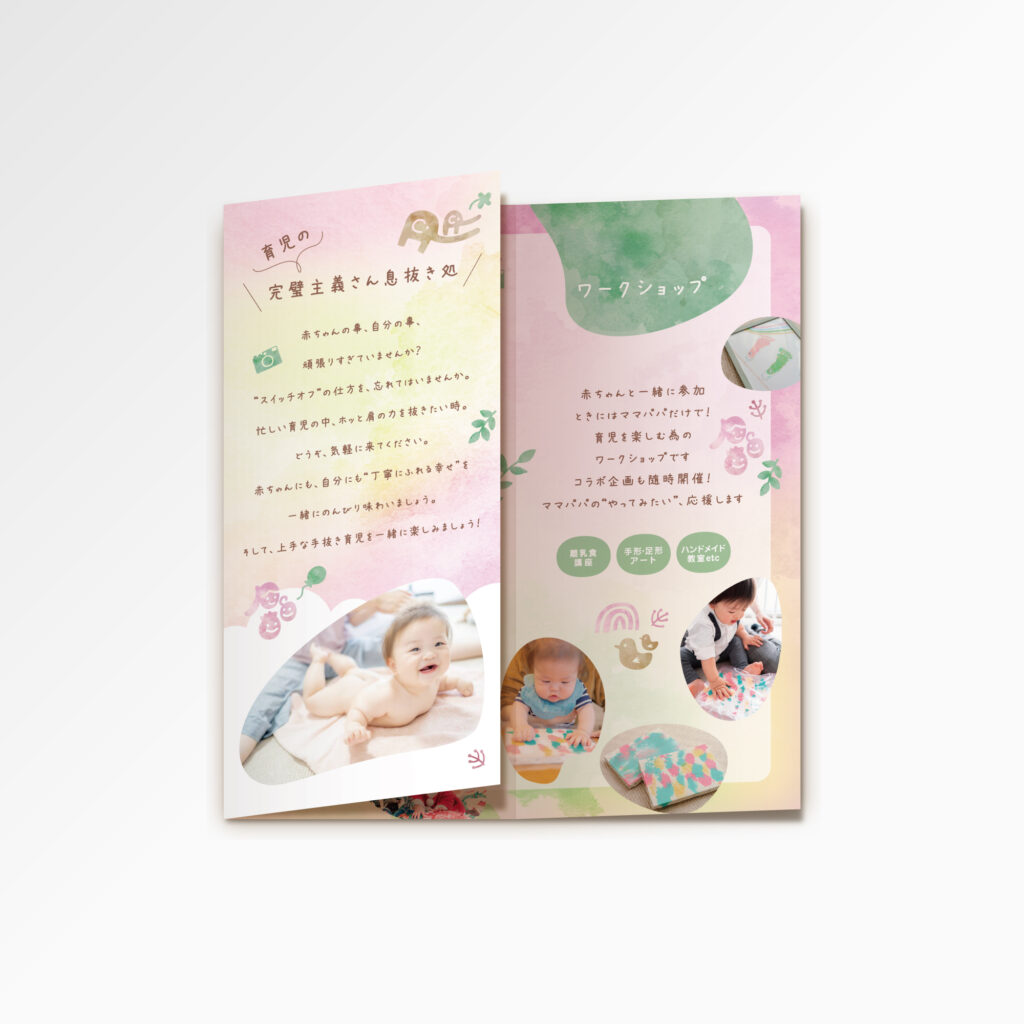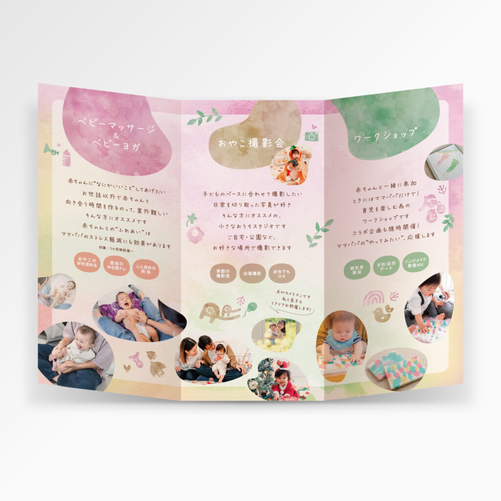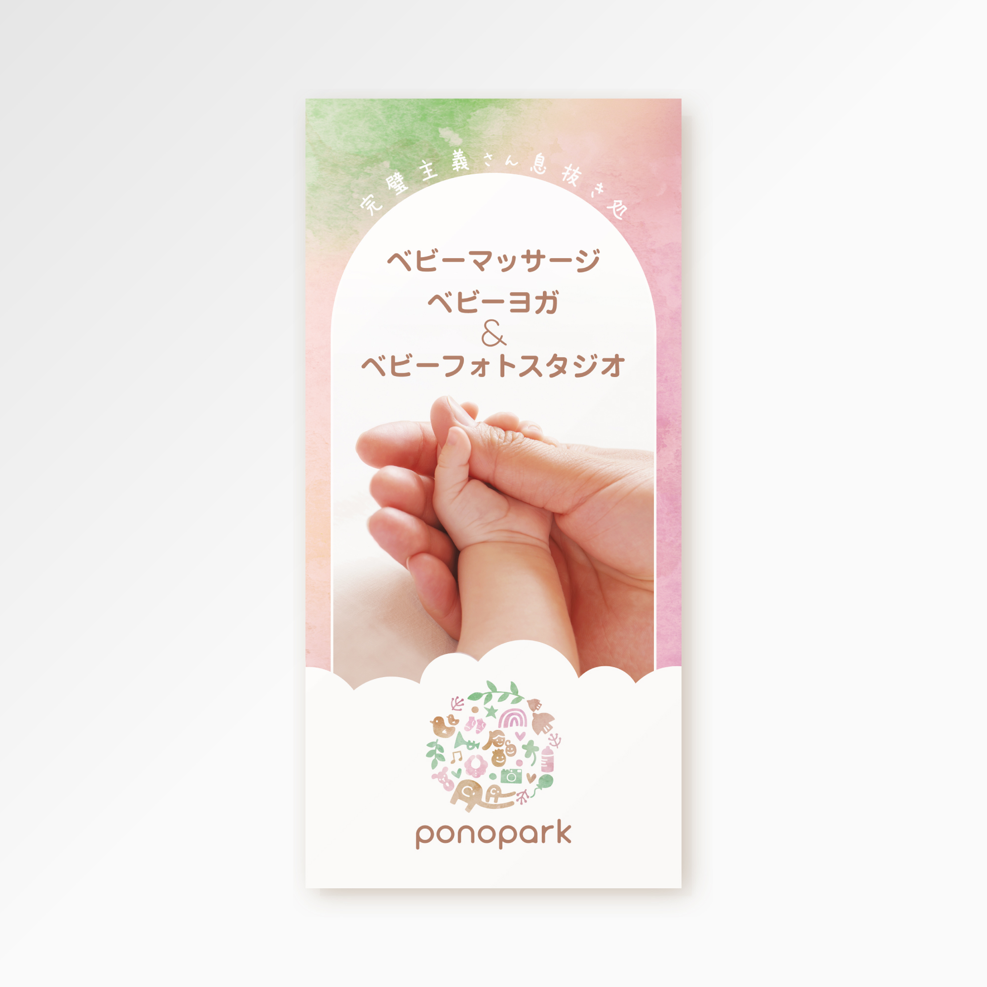 ベビーマッサージ・ベビーヨガ & ベビーフォトスタジオ ponopark様のパンフレットを制作しました。